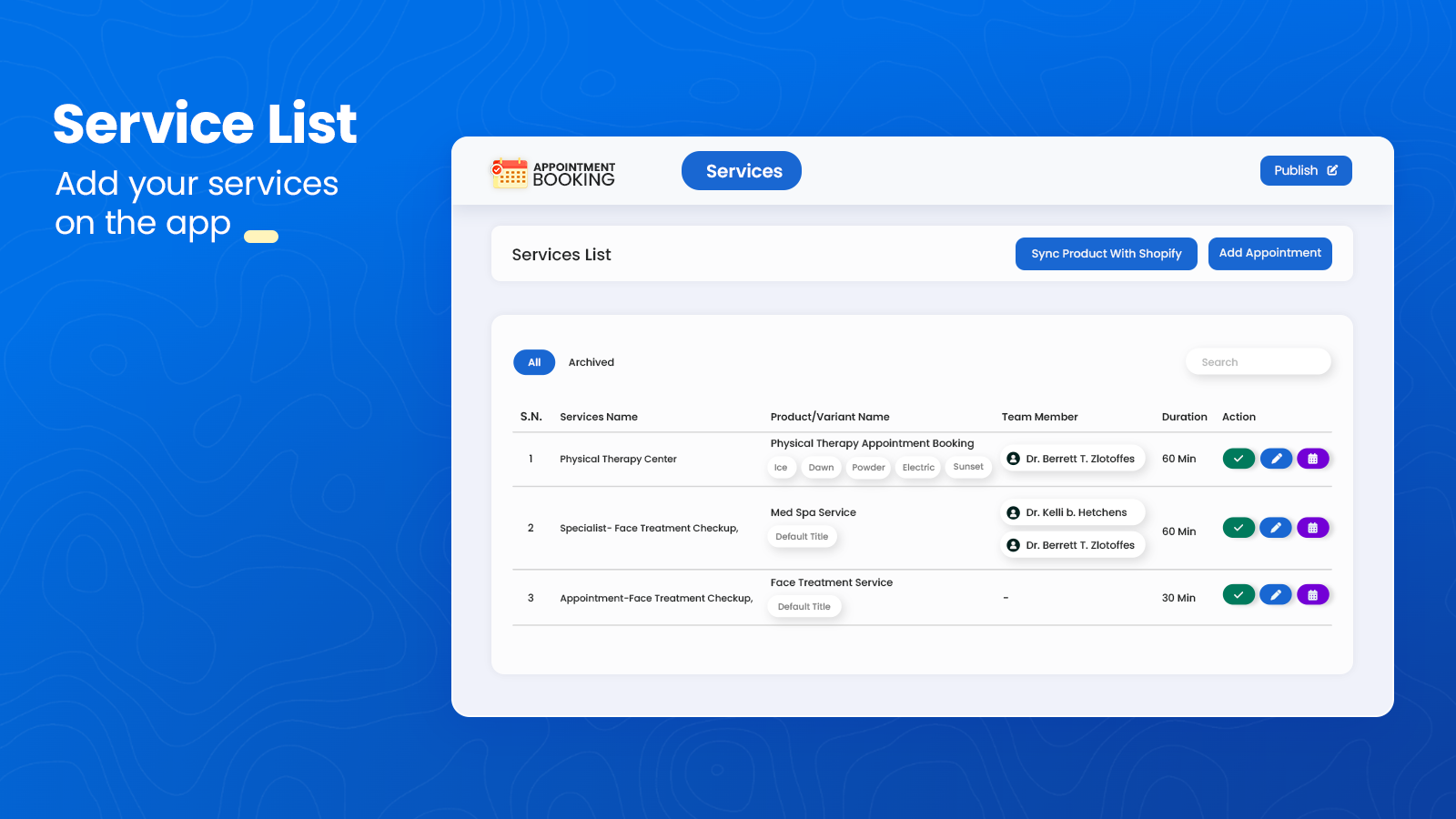 Add AptBook to your Shopify store and set up your services, staff, and availability in minutes.